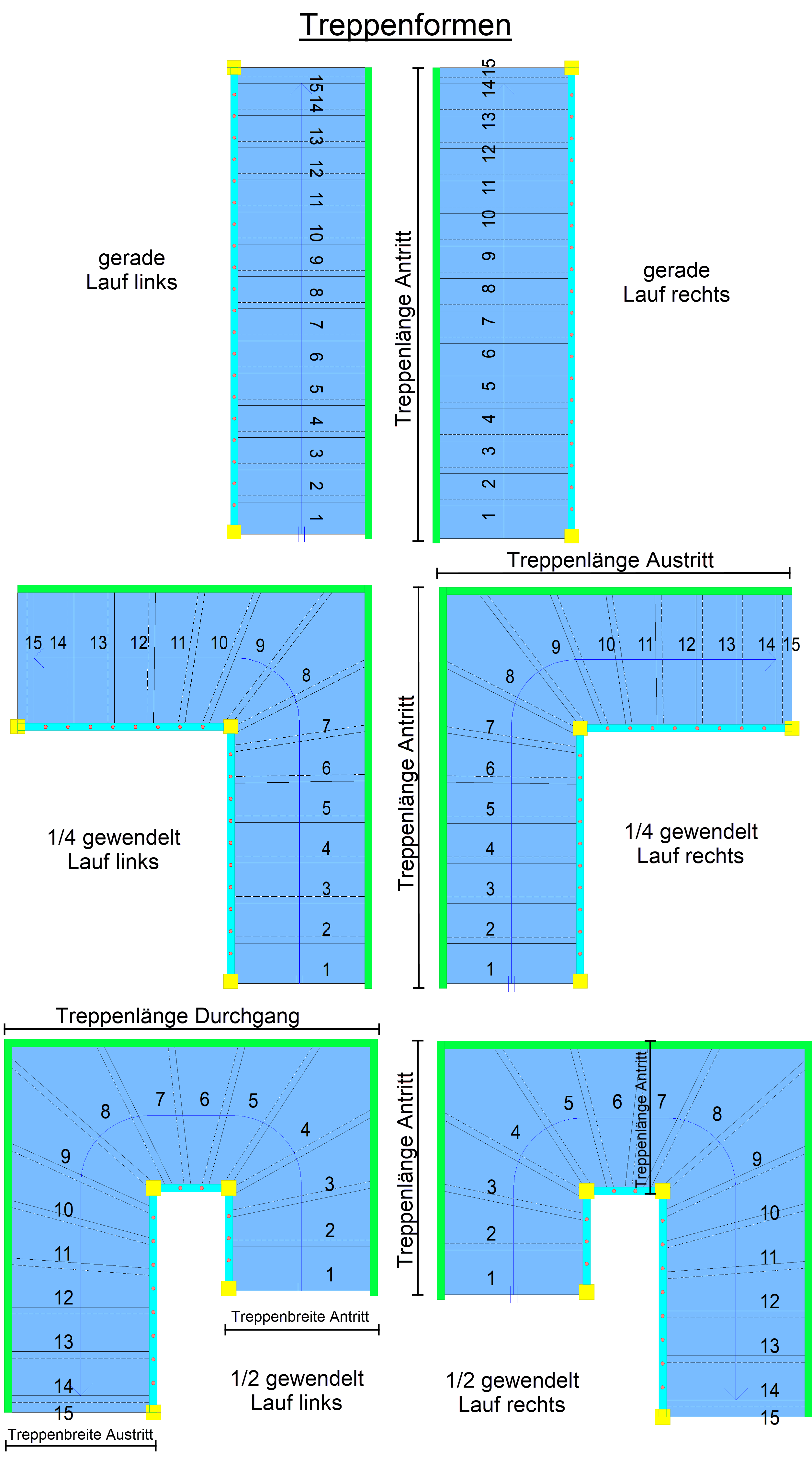 Diese Treppenform hat eine 180-Grad-Drehung, wodurch sie sich ideal für Gebäude mit begrenztem Platzangebot eignet. Sie kombiniert Ästhetik mit Funktionalität und ist häufig in Altbauten oder modernen Wohnhäusern zu finden.